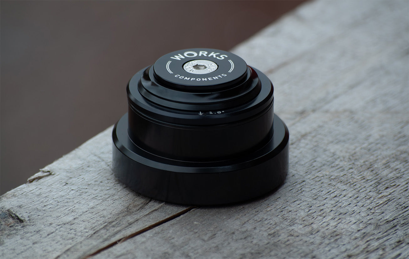 Works Components 1.0° angle-adjust headset with ZS44 upper and EC49 lower cups for tapered steerer tubes. CNC-machined in the UK from 6082-T6 aluminium with sealed bearings. Allows + or - geometry adjustment. Fits frames with 44mm upper and 49mm lower internal head tubes. Tapered steerer tube compatible (1 1/8" to 1 1/2") or with 1 1/8” fork with a reducer crown race. Ideal for trail, enduro, and downhill bikes.