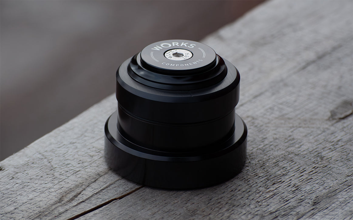 Works Components 2.0° angle-adjust headset with EC44 upper and EC49 lower cups for tapered steerer tubes. CNC-machined in the UK from 6082-T6 aluminium with sealed bearings. Allows + or - geometry adjustment. Fits frames with 44mm upper and 49mm lower internal head tubes. Tapered steerer tube compatible (1 1/8" to 1 1/2") or with 1 1/8” fork with a reducer crown race. Ideal for trail, enduro, and downhill bikes.