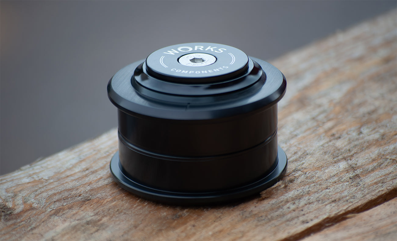 Works Components 2.0° angle-adjust headset with ZS49 upper and ZS49 lower cups for 1 1/8" steerer tubes. CNC-machined in the UK from 6082-T6 aluminium with sealed bearings. Allows + or - geometry adjustment. Fits frames with 49mm upper and 49mm lower internal head tubes. 1 1/8" steerer tube compatible. Ideal for trail, enduro, and downhill bikes.