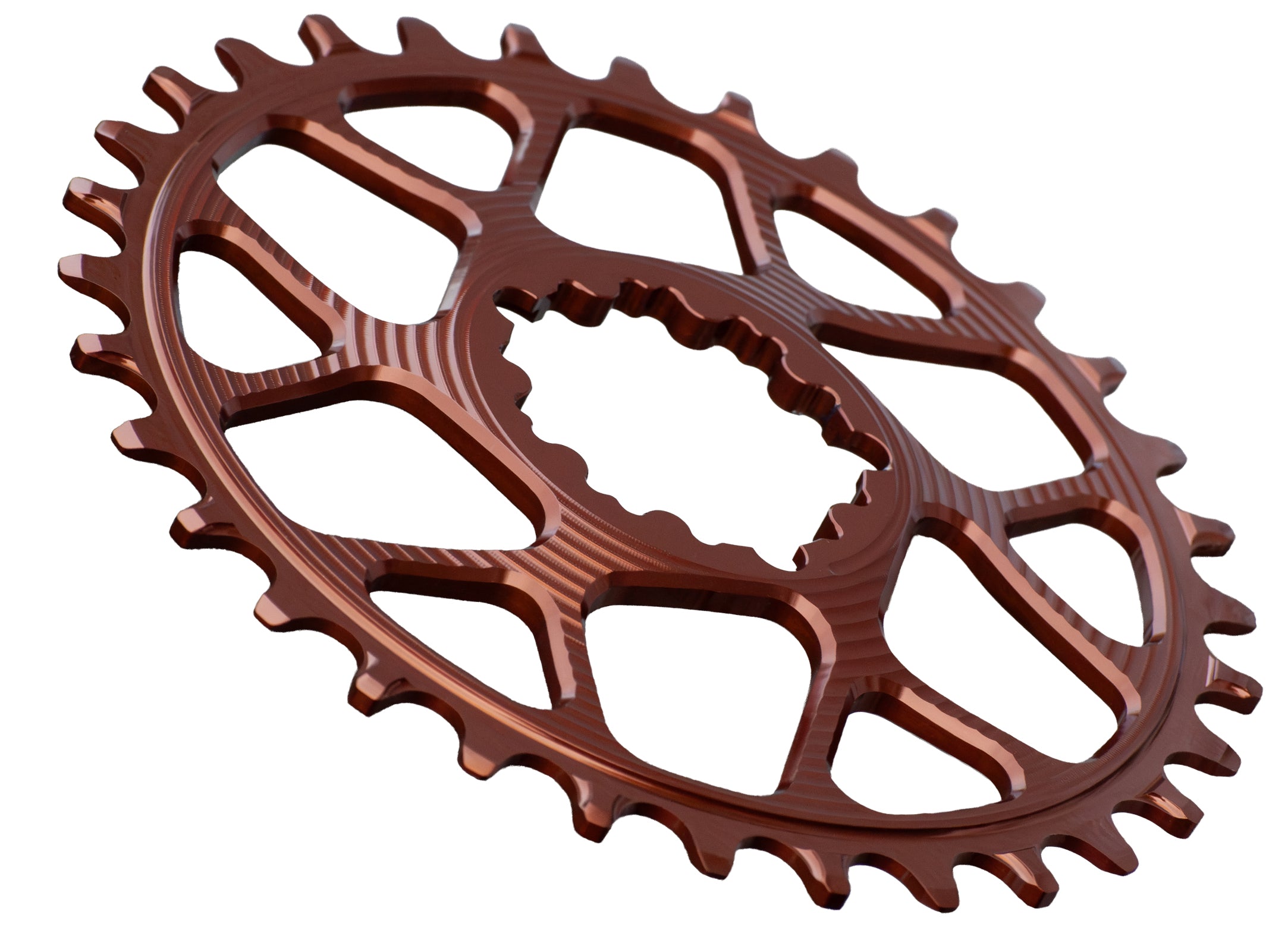 Works Components SRAM 3-bolt direct mount round chainring - engineered to work with T-Type and Non T-Type 10-12spd chains. Precision CNC-machined in the UK from aerospace 7075-T6 aluminium. Its narrow-wide tooth profile ensures excellent chain retention, making it ideal riders seeking long-lasting performance and drivetrain efficiency.