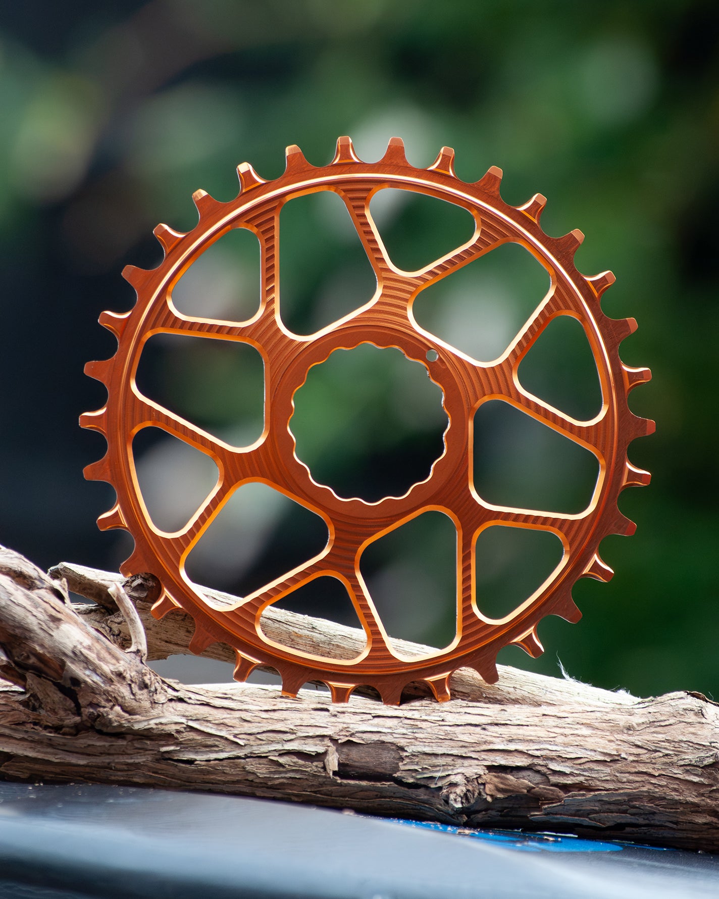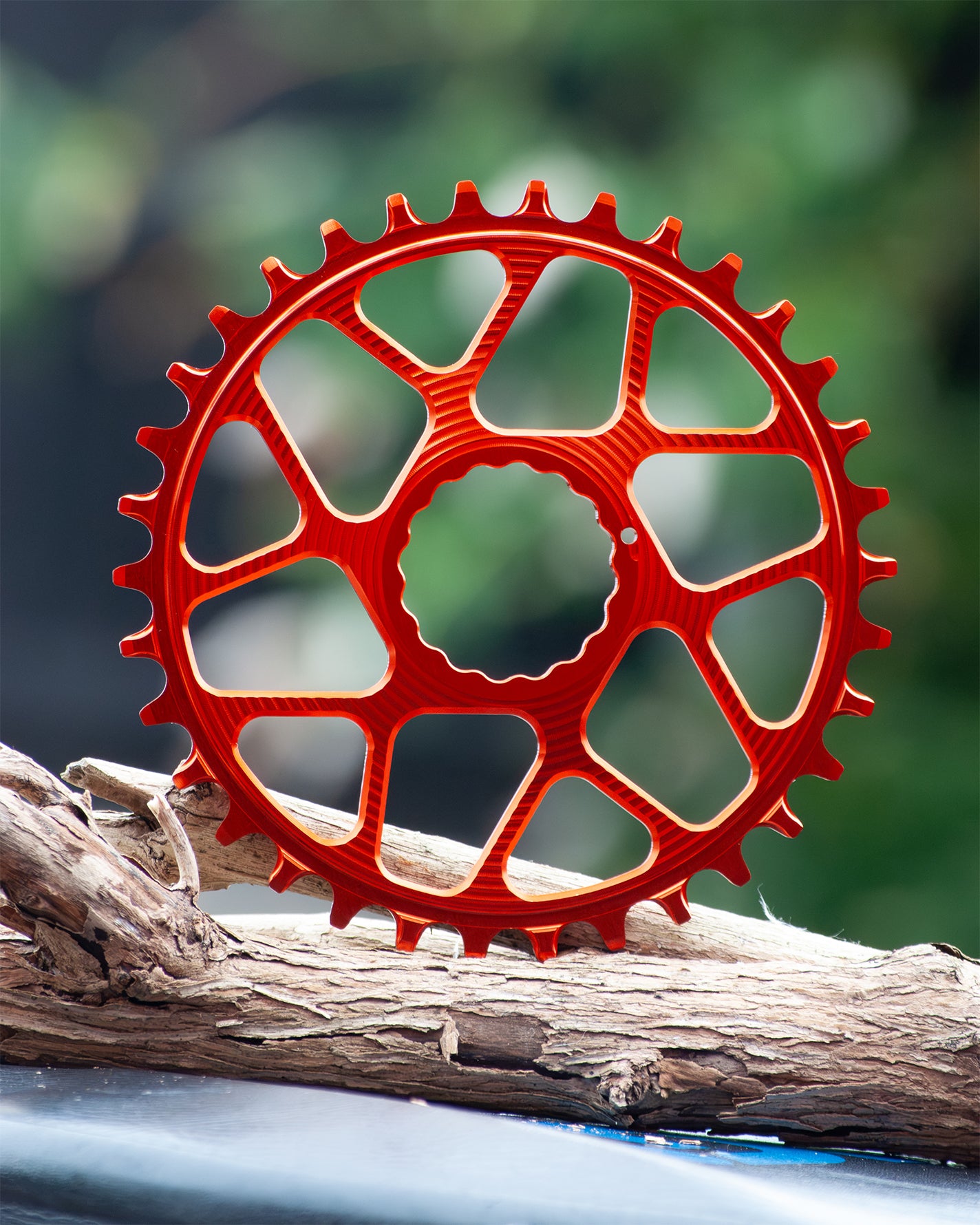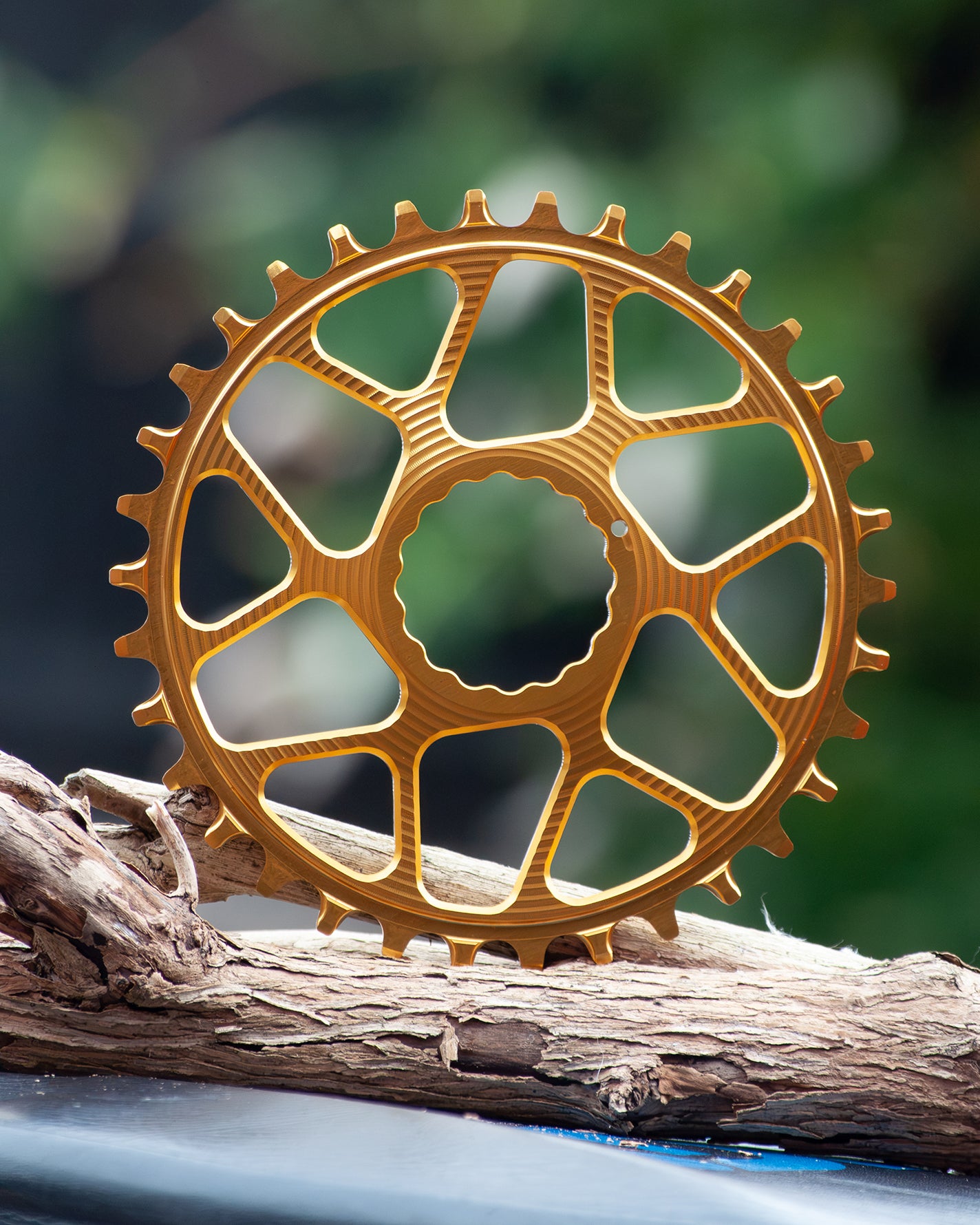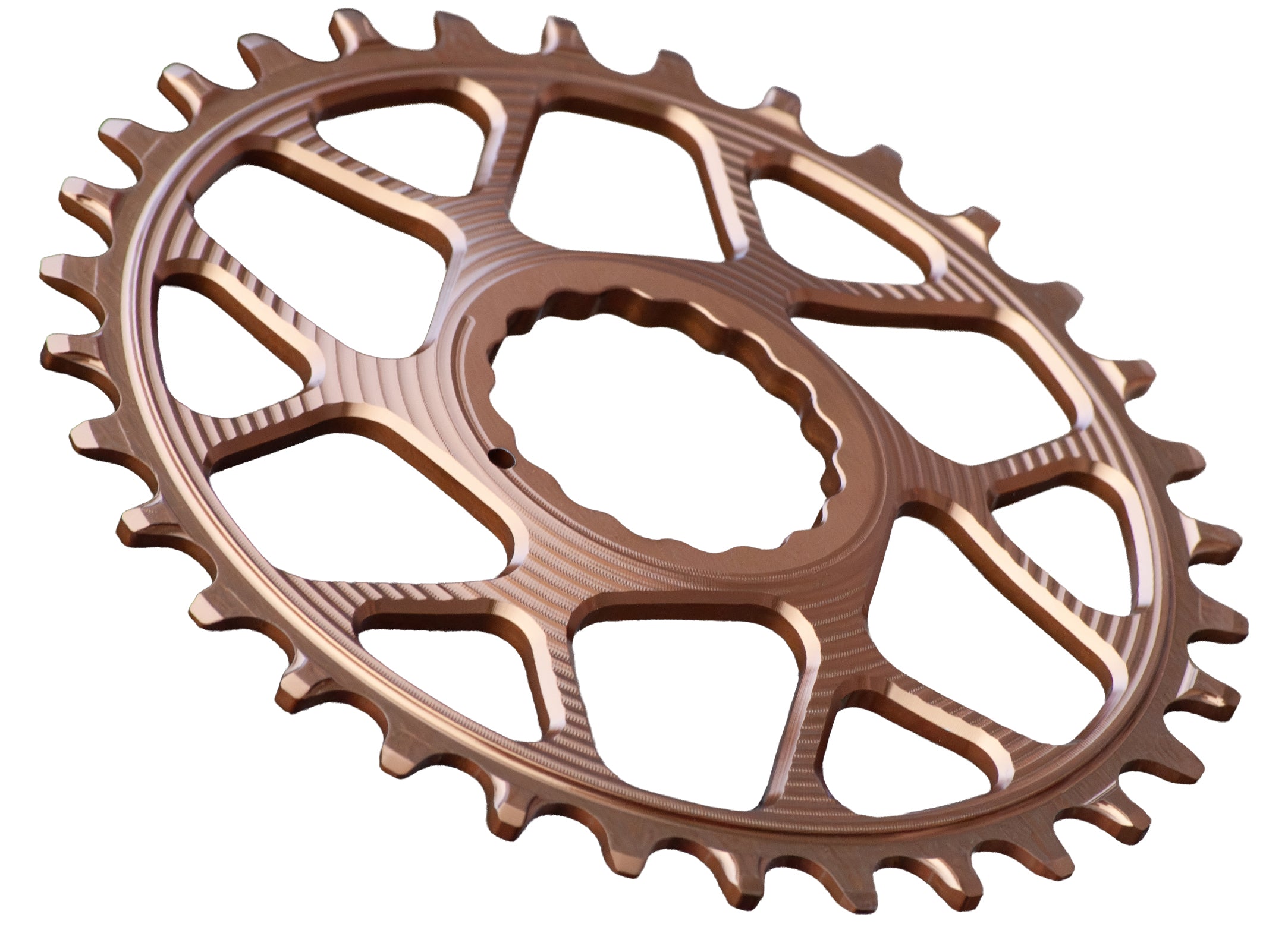 Works Components RaceFace Cinch direct mount round chainring - engineered to work with T-Type and Non T-Type 10-12spd chains. Precision CNC-machined in the UK from aerospace 7075-T6 aluminium. Its narrow-wide tooth profile ensures excellent chain retention, making it ideal riders seeking long-lasting performance and drivetrain efficiency.