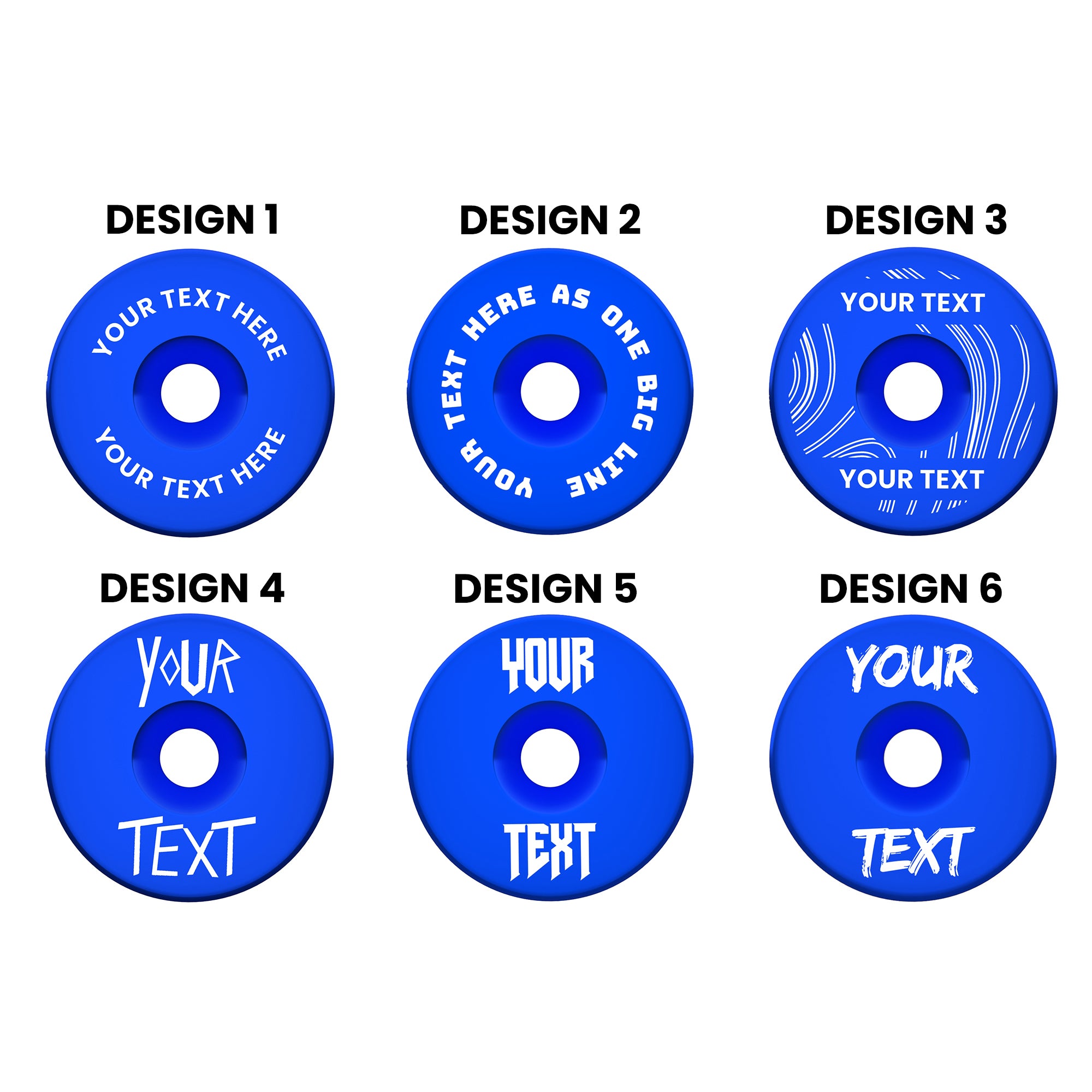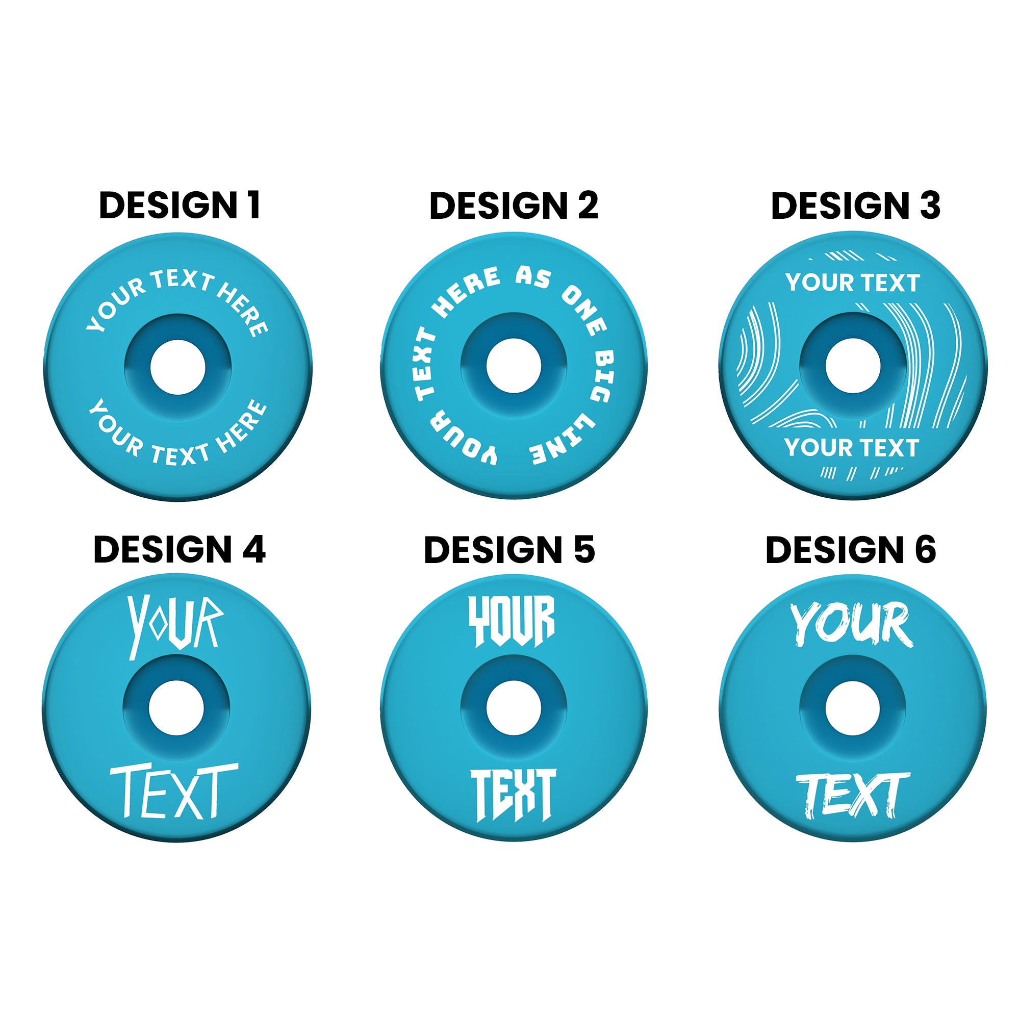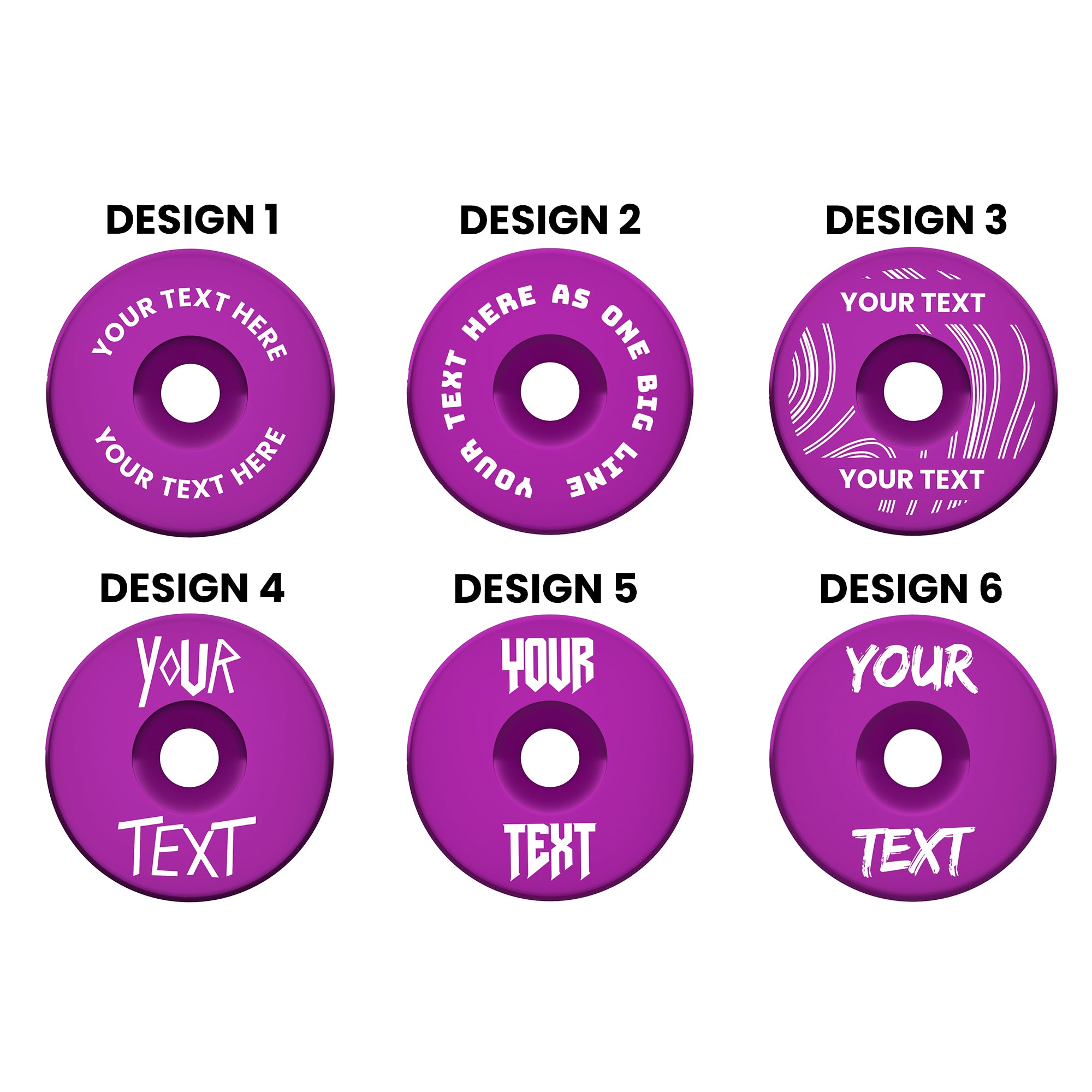 Add your own text to 6 different designs and multiple colour options.