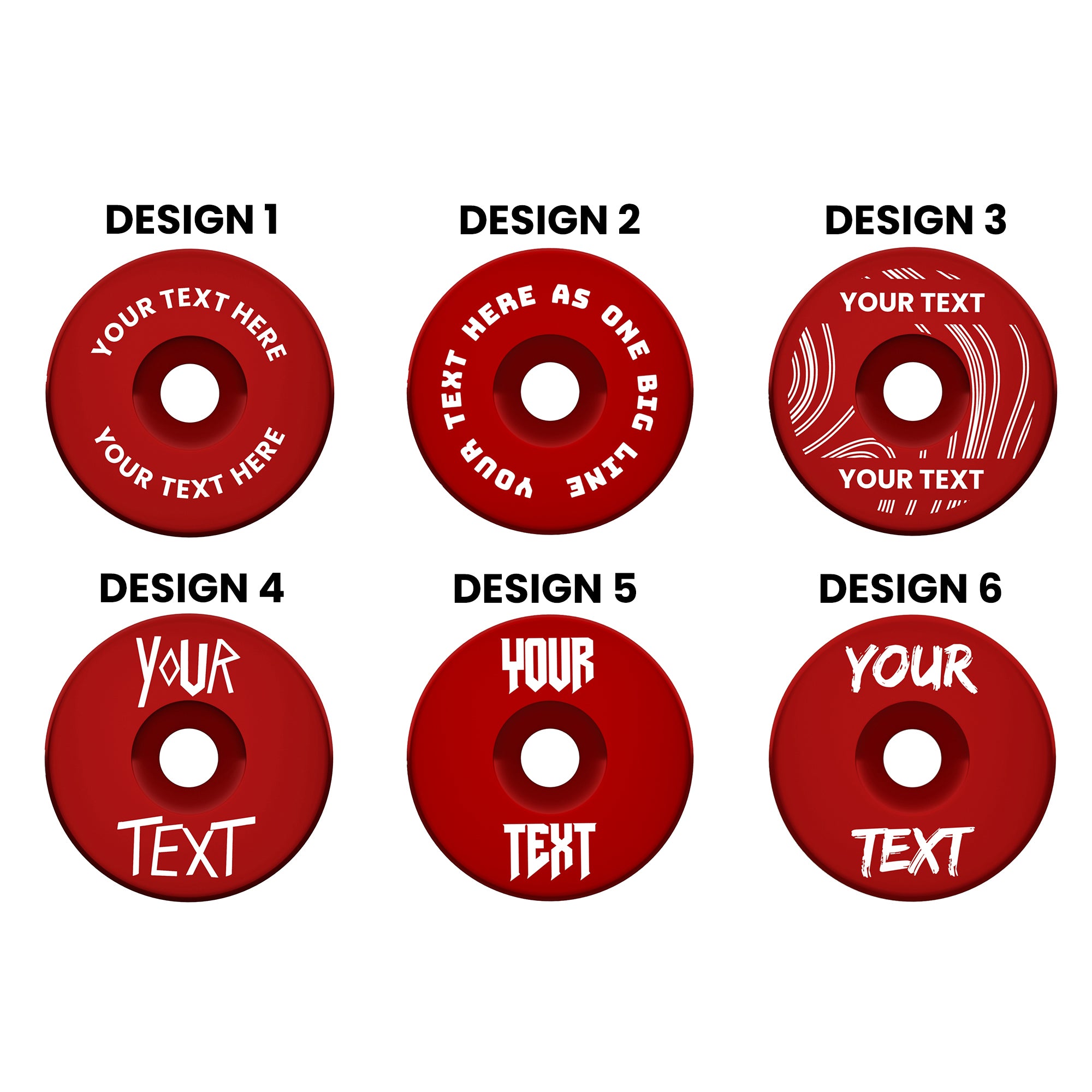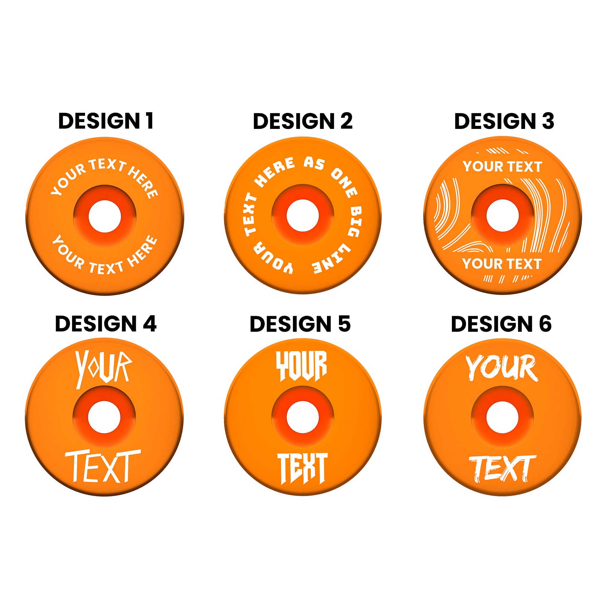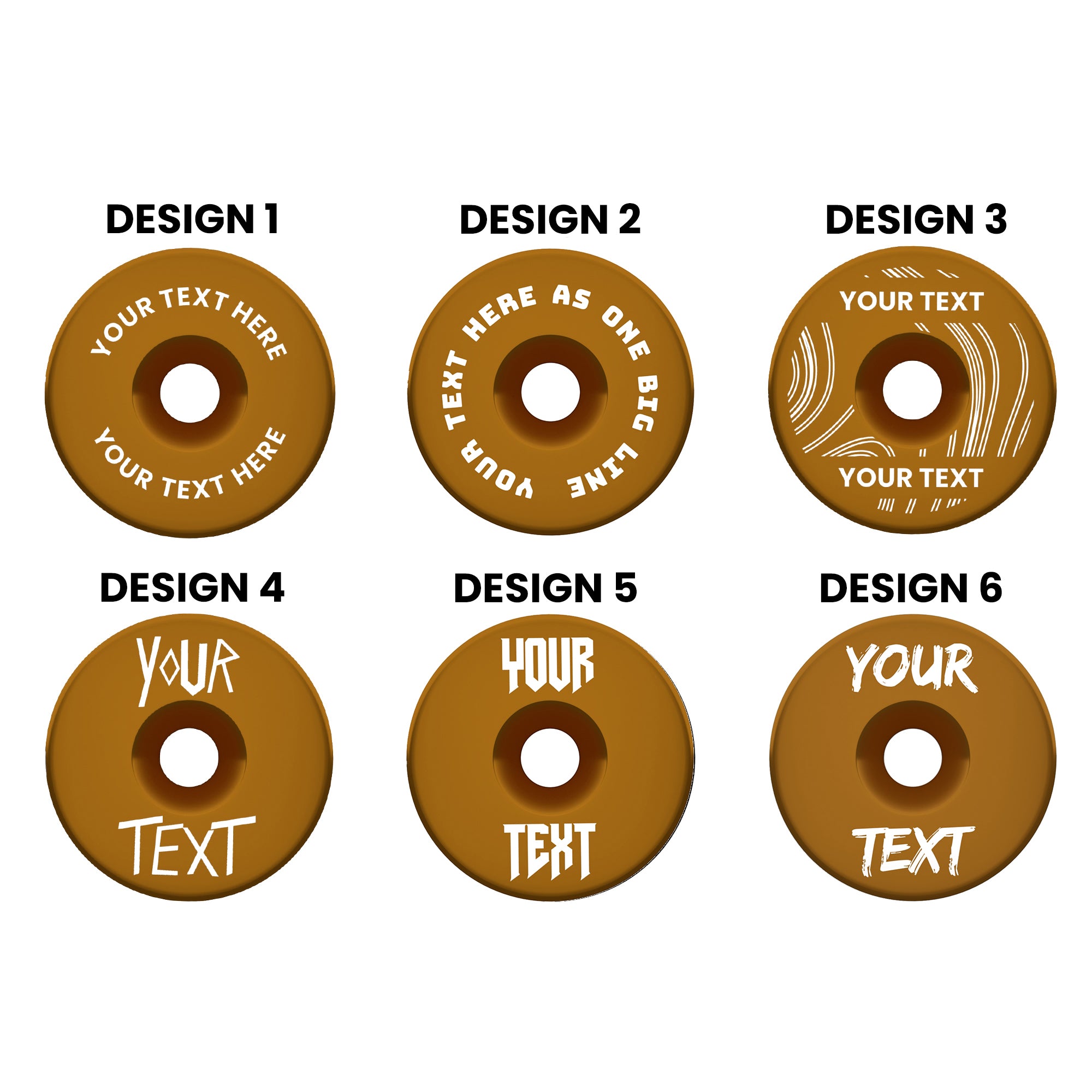 Add your own text to 6 different designs and multiple colour options.